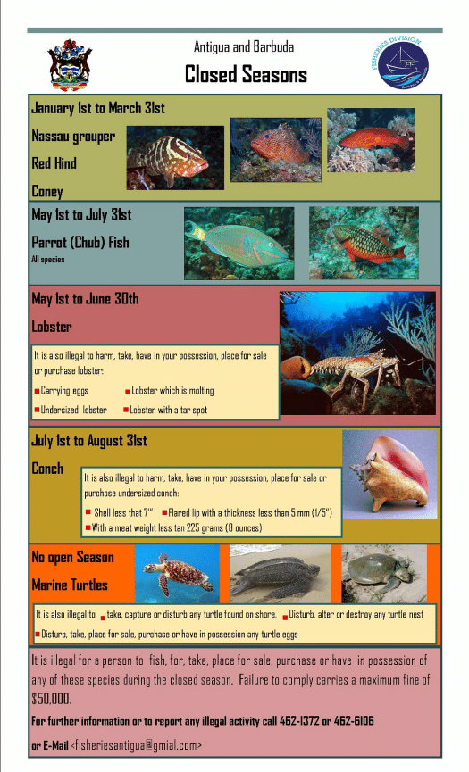 Antigua and Barbuda has entered its annual closed season for several key reef fish species, making it illegal to sell, harvest, buy, or keep Nassau grouper, red hind, and coney until the end of March.