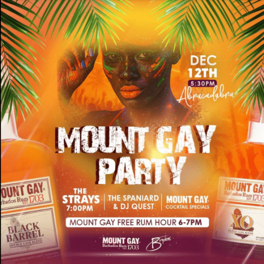The yachting season kicks off with the Mount Gay Opening Party! ✨🌴 Join us on Friday, December 12th at Abracadabra for a night of music, cocktails, and pure Caribbean energy. Enjoy a FREE Rum Hour from 6–7PM, live performances by The Strays, and nonstop vibes from The Spaniard & DJ Quest. Sip Mount Gay specials all night as we celebrate the start of the season in true island style! Must be 18+ to drink.