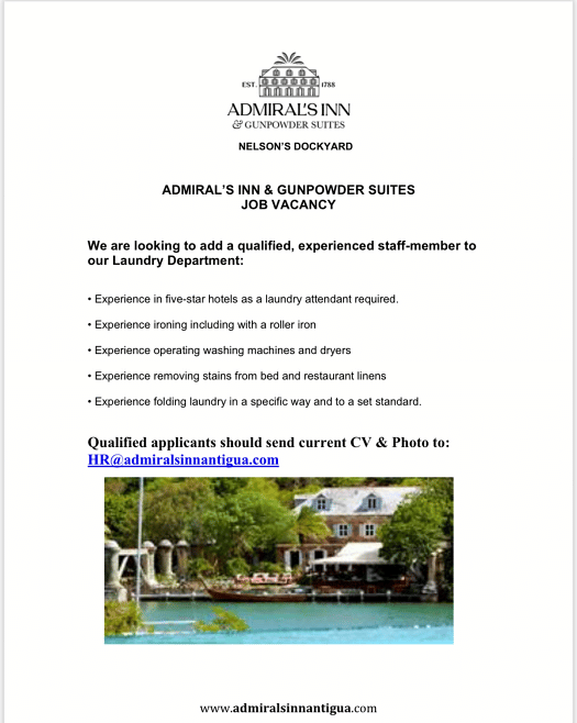 Qualified applicants should send current CV & Photo to: 📧 HR@admiralsinnantigua.com Click here for all News and Specials for Admiral's Inn - Pillars Restaurant
