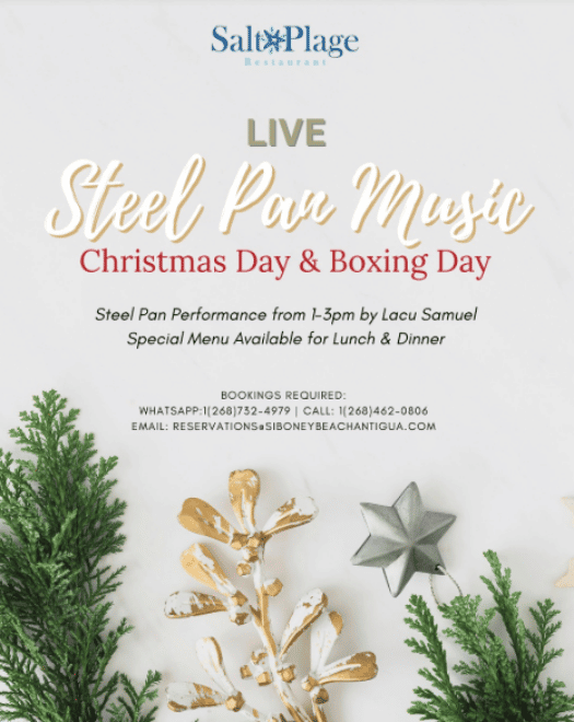 Join us at Salt Plage this Christmas & Boxing Day for live steel pan music and a special holiday menu! πβ¨Steel pan by Lacu Samuel (1β3pm) and festive dishes available for lunch & dinner.