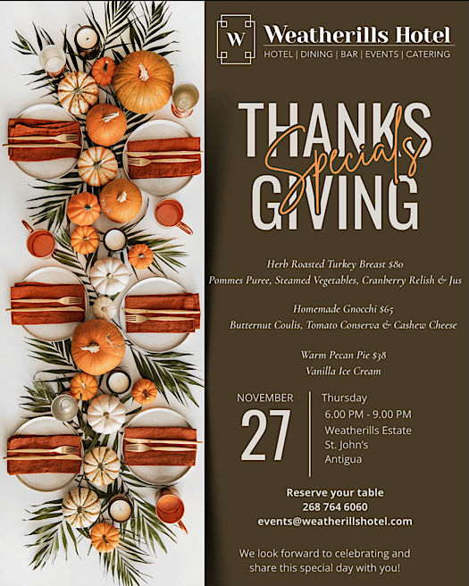 Join us at Weatherills Estate, St. John’s, Antigua, for a memorable evening of great food, dining, and celebration.