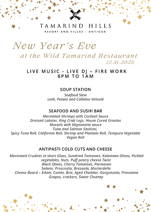 Ring in 2026 at the Wild Tamarind Restaurant! Join us on New Years Eve, December 31, 2025, for an unforgettable celebration with live music, a live DJ, and dazzling fireworks. The party kicks off at 8 PM and goes until 1 AM—don’t miss the ultimate night of fun and excitement!