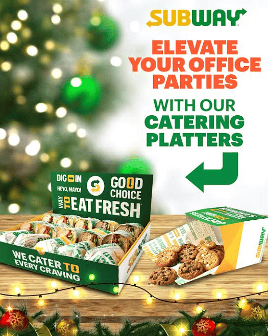 Treat your staff this Christmas with SUBWAY Catering platters, perfect for offices, teams, and corporate events, or make gifting simple this Christmas with SUBWAY Gift Vouchers.Perfect for staff appreciation, customer rewards, and holiday incentives. Flexible, convenient, and guaranteed to be enjoyed.