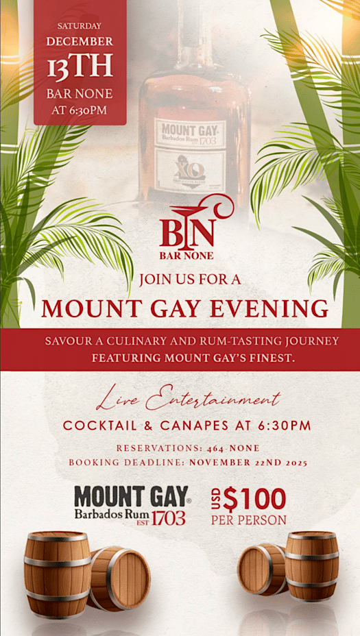 Prepare for an evening of pure elegance and refined taste! Bar None proudly presents a luxurious night celebrating the iconic Mount Gay Rum—the world’s oldest running rum distillery.