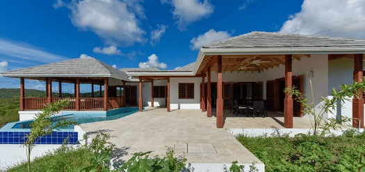 The Villa offers well thought out accommodation, comprised of bright living room, open plan kitchen/dining room fitted with top of the range stainless steel appliances. Set over two floors, both levels of the Villa have wrap around verandahs, which lead to an infinity pool and breath taking views of the Caribbean ocean.