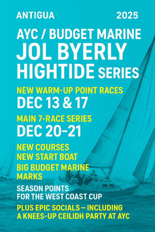 The Antigua Yacht Club (AYC) is delighted to confirm that the AYC / Budget Marine Jol Byerley Hightide Series is shaping up to be one of the most exciting racing events of the season. With expressions of interest continuing to roll in, anticipation is high for a strong fleet and spectacular competition on Antigua`s waters. AYC is proud to welcome long-term sponsor Budget Marine yet again as the headline sponsor for the 2025 edition, bringing fresh energy and support to this much-loved annual series.