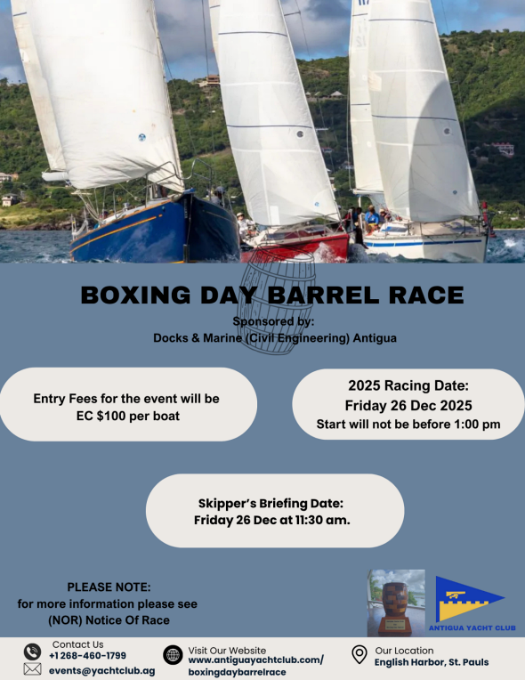 For questions, please get in touch with 460-1799 or events@yachtclub.ag