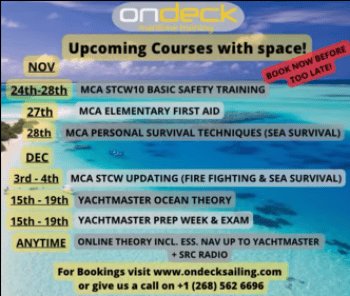 Give us a call on +1(268)562 6696 or visit www.ondecksailing.com for more info and to find the course for you or a loved one! We are also available weekdays between 0800-1600 at our Slipway office, so pop in for a chat!
