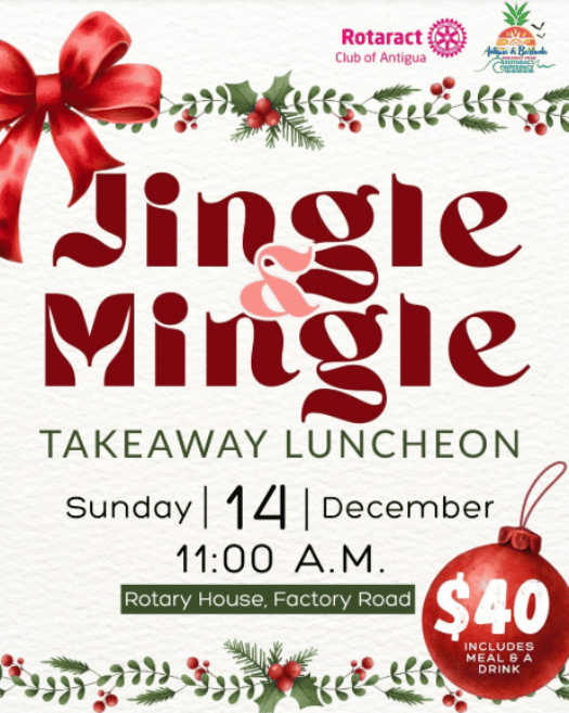 Get into the holiday spirit at the Jingle & Mingle Takeaway Luncheon! 🎄✨Join us on Sunday, December 14th at 11:00 A.M. at Rotary House, Factory Road. Enjoy a delicious meal and drink for just $40—perfect for a festive Sunday treat!