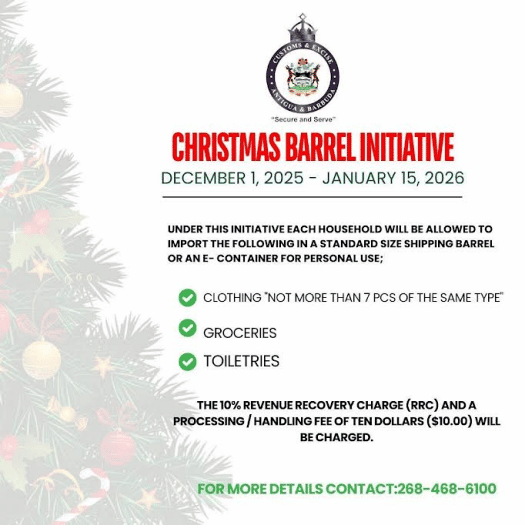 Importers are reminded that the Christmas Barrel Initiative is strictly for personal use essentials. Shipping items that fall outside the approved list such as electronics, cell phones, tablets, appliances, or other ineligible goods will cause the barrel to