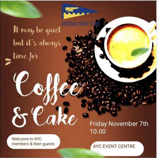 Antigua Yacht Club , It may be quiet, but it’s always time for Coffee & Cake. Email: ayc@yachtclub.ag