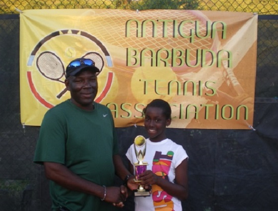 Eleven (11) year old Chante Francis (Antigua Girls High /Halcyon Tennis) claimed the girls championship trophy yesterday with her defeat over ten (10) year old Ashley Bersma ( St. Nicholas Primary/ Halcyon Tennis) in straight sets 4-1, 5-3