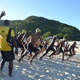 | TINMAN ROHR PRO ATHLETES ENJOY ENVIABLE EXPERIENCE IN BARBUDAFriday 8th March 2013 Barbudans host a number of visiting professional triathletes on island for Tinman Rohr Aquathlon & 10k Swim set for Saturday.