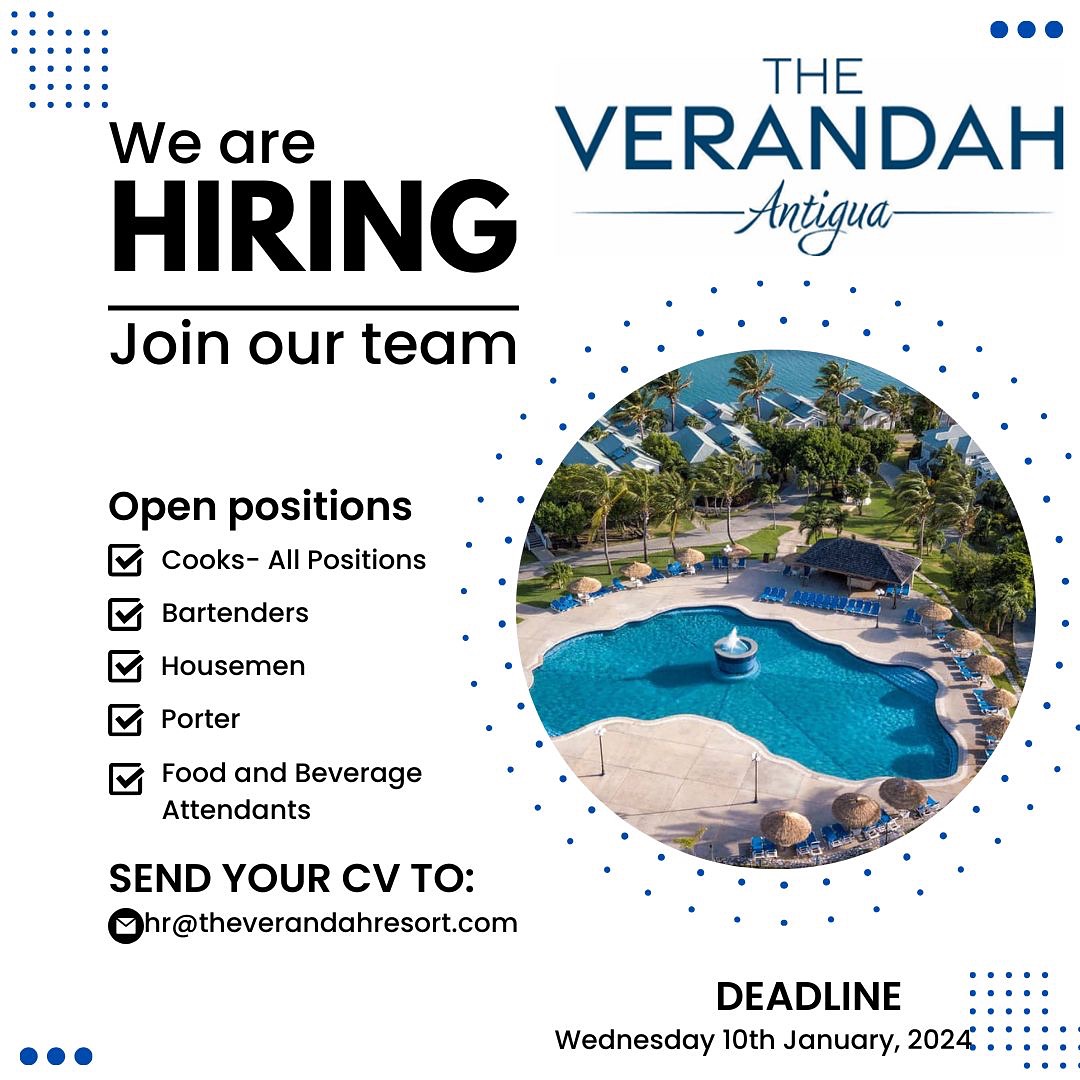 | JOB VACANCY: MAINTENANCE SUPERVISORMonday 28th July 2025 The Verandah Antigua is seeking a skilled Maintenance Supervisor to lead our maintenance operations. This role ensures that all facilities and equipment are well-maintained and functioning efficiently to support a seamless guest experience. Read More