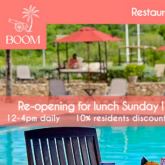 REOPENING SATURDAY Thursday 9th October 2025 Boom Restaurant, Pool & Spa reopens for lunch on Sunday, October 12th!... Read More