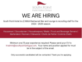 | NEW SEASON VACANCIES Wednesday 23rd August 2023 South Point Hotel is recruiting staff for the 2023/24 season. Apply by September 20th Read More