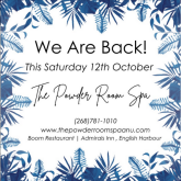 | POWDER ROOM SPA IS BACKMonday 16th October 2023 Pamper yourself; open 10.00 am-5.00pm every day at The Powder Room located at Boom Restaurant Read More