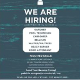 | VACANCIES FOR THE NEW SEASONThursday 24th August 2023 Great opportunities for Gardener, Pool Technician, Carpenter, Bellman, Waiter/Waitress, Beach Server, Room Attendant. Find more details here and apply by 31st August Read More