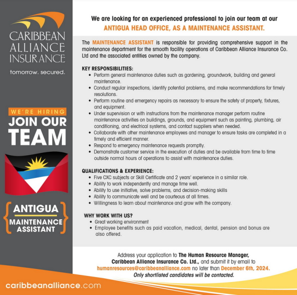 Caribbean Alliance Insurance is pleased to announce an exciting career opportunity at our 🇲🇸 M...