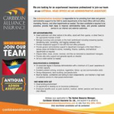 | JUNIOR FINANCE ASSOCIATE AT OUR HEAD OFFICE IN ANTIGUAFriday 25th July 2025 Caribbean Alliance Insurance is excited to announce an opening for a Junior Finance Associate at our Head Office in Antigua. If you’re looking for a rewarding career opportunity, we want to hear from you. Read More