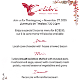 We’re thrilled to welcome you back as Colibri reopens for the season on Thursday, November 13! ...
