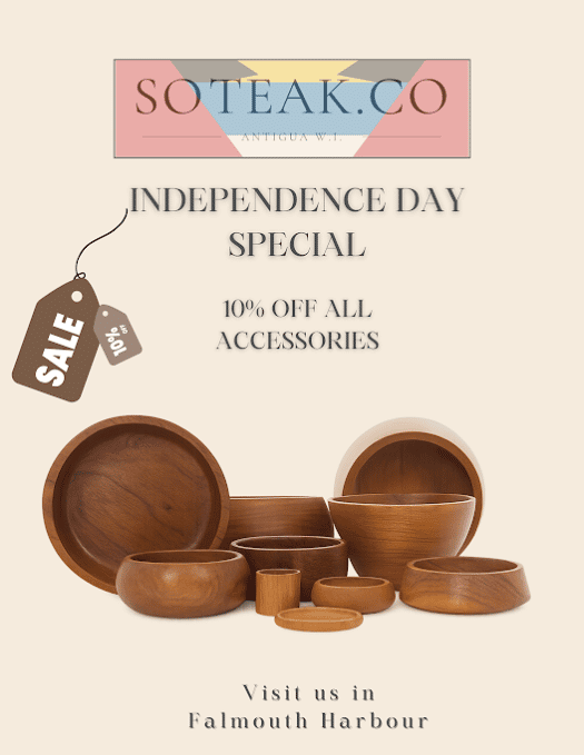 INDEPENDENCE DAY SPECIAL SOTEAK Independence Day Special - 3–7 November 2025 Celebrate Independence in timeless style! Enjoy 10% off all accessories, including: • Teak chopping boards • Lanterns • Vases  Add a touch of elegance to your home as you honour the spirit of Antigua & Barbuda. Visit us in Falmouth Harbour! Click here for all News and Specials for SOTEAK.co