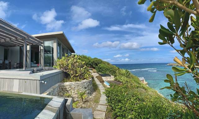 Standing atop a slightly elevated headland on the edge of (and with private access to) a tranquil coral fringed bay, the villa has a commanding panoramic view of the Indian Town National Park promontory, a protected area of exceptional natural beauty and the infinite horizon of the Atlantic Ocean beyond.
