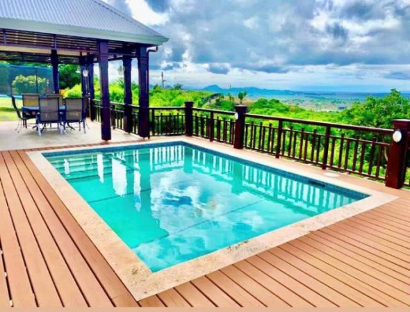 Price: USD $4,500 This 3-bedroom 2.5-bathroom home is located on a hilltop overlooking the West Coast of Antigua, just 2 minutes to Cedar Valley Golf course. Suitable for executive or a small family. From this ideal location you can easily access major supermarkets, schools, the Town Centre, pictures Dickenson Bay and so much more. This home is pet friendly and has a backup generator and water cistern.