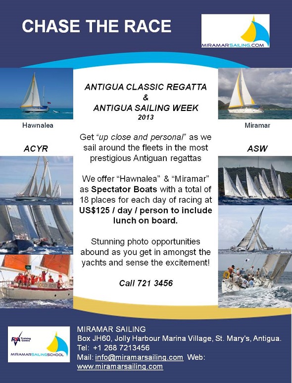 MIRAMAR SAILING JOINS THE OFFICIAL SPECTATOR BOAT FLEET Thursday 11th April 2013