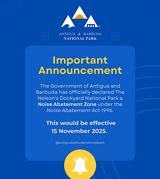 The Government of Antigua and Barbuda has officially declared Nelson’s Dockyard National Park a Noise Abatement Zone under the Noise Abatement Act 1996.