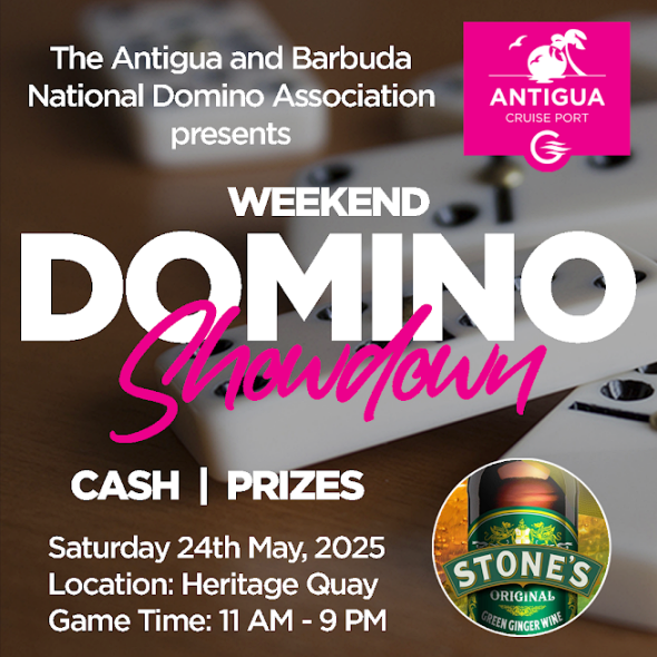 The first Domino Showdown kicks off on Saturday, May 24, 2025, from 11:00 AM until 9:00 PM in Heritage Quay. Players can compete at different tables by skill level, either solo or in teams, with entry fees starting at just $1 XCD per player. Winners can double their registration fee at the end of each game.