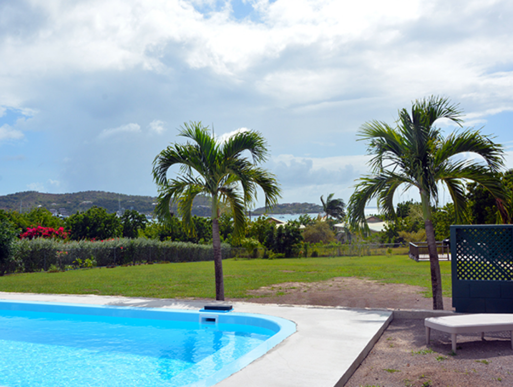 Superyacht view is a spacious and radiant apartment located in Monks hill and has a breathtaking view over Falmouth Harbour. At a short walking distance you can find public buses going to English harbour Marina with all the shops, bars and restaurants. It is a ground floor apartment with a shared pool ,private entrance and private deck with table and chairs. In the garden, there is a hot tub that guests can use at an extra cost (10 USD per hour with a complimentary bottle of bubbly). The fully equipped kitchen has a large window door on the pool and the garden. The bedroom has a king-size bed with en-suite bathroom (with a washing machine) and one of the sofas in the living room converts into a sofa bed. There are AC units in both the bedroom and living room. The apartment is brand new and the area is very quiet and pleasant. The nearest supermarket is only a 10-minute walk away from the apartment.