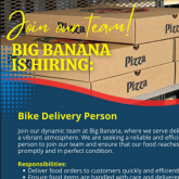 | JOB AVAILABLE: BIKE DELIVERY PERSONThursday 23rd January 2025 Join the Big Banana team! We’re hiring a reliable and friendly Bike Delivery Person to deliver our delicious meals quickly and safely. Read More