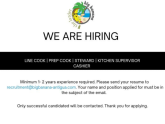 | VACANCIES FOR STEWARD, Wednesday 26th July 2023 Big Banana is recruiting Steward, line chef, prep cook. Send resumé now Read More
