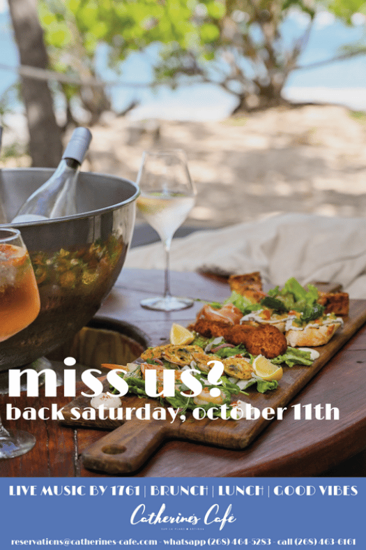 Catherine’s Café reopens Saturday, October 11th with live music on the beach from 1761, performing from 2–5 PM!