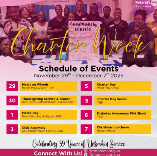 🎉 It’s Charter Week! 🎉The Rotaract Club of Antigua is celebrating 39 years of service, community, and growth! Join us as we honor our past achievements and look forward to an exciting future for our esteemed Club.