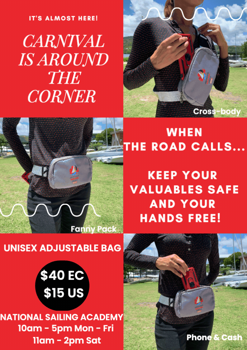 Hit the road with Antigua Sailing Week reusable bottle to stay hydrated and keep your valuables safe, and your hands free with a cross-body pack from National Sailing Academy.
