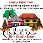 Enjoy festive Christmas shopping in the fantastic, unique boutiques at Redcliffe Quay until 8.30 pm ...