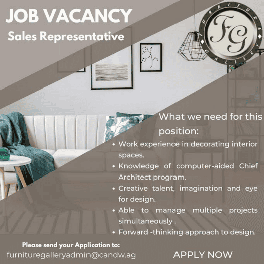 Please send your Application to: furnituregalleryadmin@candw.ag
