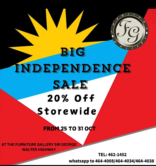 🎉 Sale Alert in Antigua! Celebrate Independence Week with 20% off storewide! 🛍️ Hurry, offer runs from October 25th to 31st, 2024. Visit us in-store or call/WhatsApp 464-4008, 464-4034, or 464-4038 for more details.