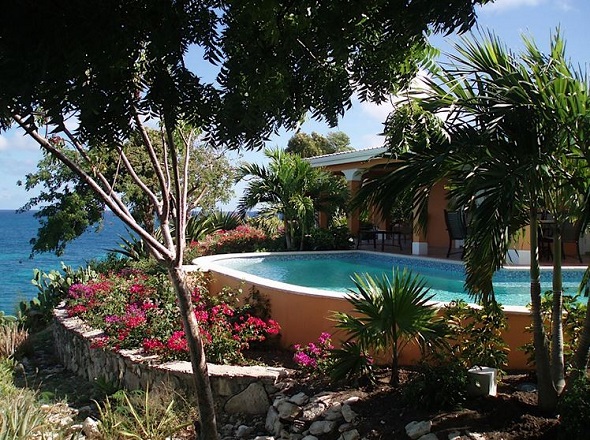 Blue Heaven Villa, a three-bedroom, two-bathroom Caribbean styled main residence with adjacent guest cottage, offers breathtaking ocean views, and defines casual, Caribbean living at its best. Situated on a 1+ acre waterfront parcel, this luxury villa is 80 feet above the colourful, reef protected Atlantic waters below. One will most certainly appreciate the scenic, panoramic views of Antigua’s north coastline with its numerous bays and inlets beyond.