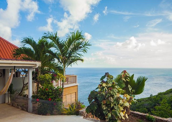 Approached via a paved hillside road affording expansive views of the South coast of Antigua and towards Falmouth, there is ample parking for several vehicles and steps flow down through a lovely landscaped, tropical garden and leads one to the front door.