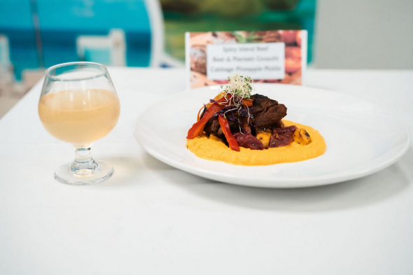 Tamarlie Williams of Pares Secondary School has been crowned the winner of the Taste of Wadadli Junior Chef Competition 2024. Guided by his mentor, Chef Lemuel Duberry of Mill Reef Club, and inspired by his Home Economics teacher, Shennette Whyte, who served as the driving force behind his entry, Tamarlie impressed the judges with his exceptional dish, “Spicy Island Beef with Beet, Plantain Gnocchi and Cabbage Pineapple Pickliz,” earning the top honor in this celebrated culinary showcase.