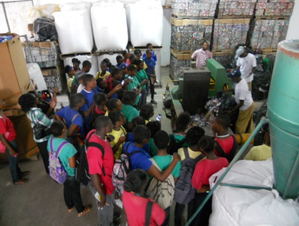 Students of the All Saints Secondary School visiting the Antigua and Barbuda Waste Recycling Corporation (ABWREC). Courtesy ABWREC
