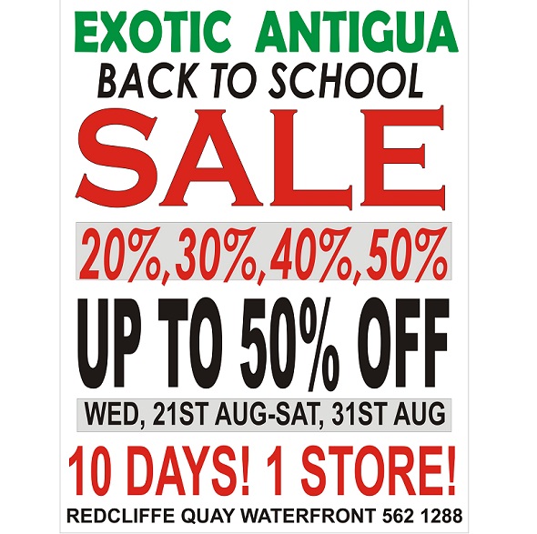 Up to 50% OFF in this magnificent back to school sale at Exotic Antigua! Sale is from 21st of August to 31st of August - don't miss it!