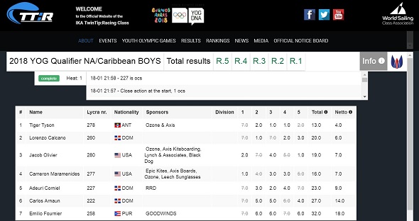 On January 18, 2018, the third day of the North American and Caribbean Olympic Qualifiers, Tiger Tyson is still leading the competition in 1st place.