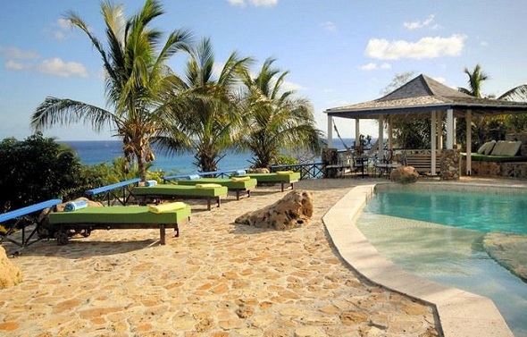 The main house is complemented by a sizeable pool area and sun deck, built from local stone. Carved from the hillside, impressive natural stone terraces create the most unique sunbathing spot, adding to the properties charm and character. Cocktails and sunsets can be enjoyed in the shade of the poolside Gazebo, which offers spectacular views out towards Montserrat and Guadeloupe.