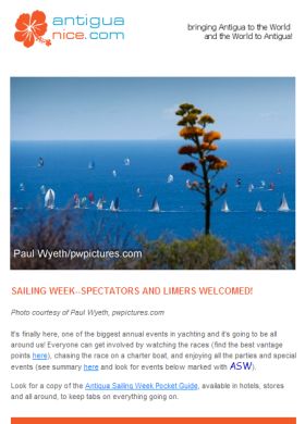 This week's What's On newsletter tells you how to enjoy Antigua Sailing week from a spectator’s standpoint, as well as listing all the Sailing Week and other entertainment and activities of the weekend and the coming week.