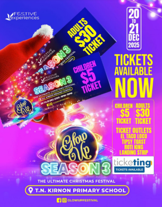 Your favourite spots are officially stocked with Glow Up tickets! πβ¨ Grab yours this weekend at El Taco Loco, Tipsy Toast, Roti King, Landing Strip, or on The TickeTing App. So while youβre picking up your taco, roti, or Landing Strip burger, make sure to secure your ticket for the biggest holiday glow-up of the season! ποΈπ«