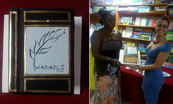 A special Wadadli Pen cake was created by Danielle George-John of Sweet Dreams, who presented it to Wadadli Pen Co-ordinator Joanne Hillhouse.